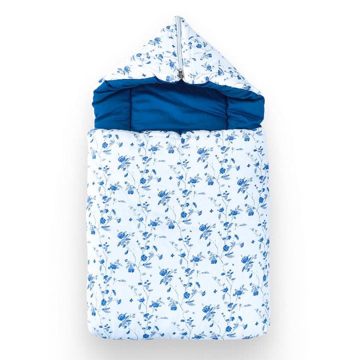 Blue Floral Hooded Carrynest with head shaping Pillow