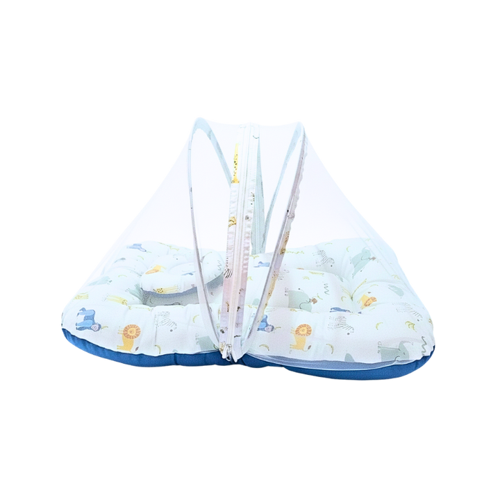 Give your little one the safest and most comfortable sleep with this portable infant baby mattress and integrated mosquito net. Designed with your baby's comfort and protection in mind, this multi-functional bed provides a cozy, cushioned space for newborns and infants. The breathable netting offers 360° protection against mosquitos, flies, and other insects, ensuring a peaceful, bite-free rest.